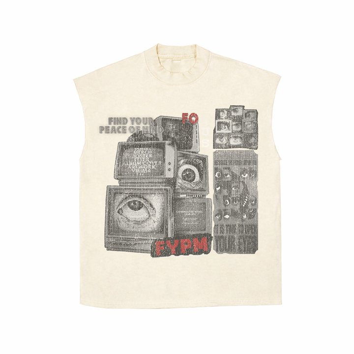 “Mass Media” Cutoff T-Shirt Cream